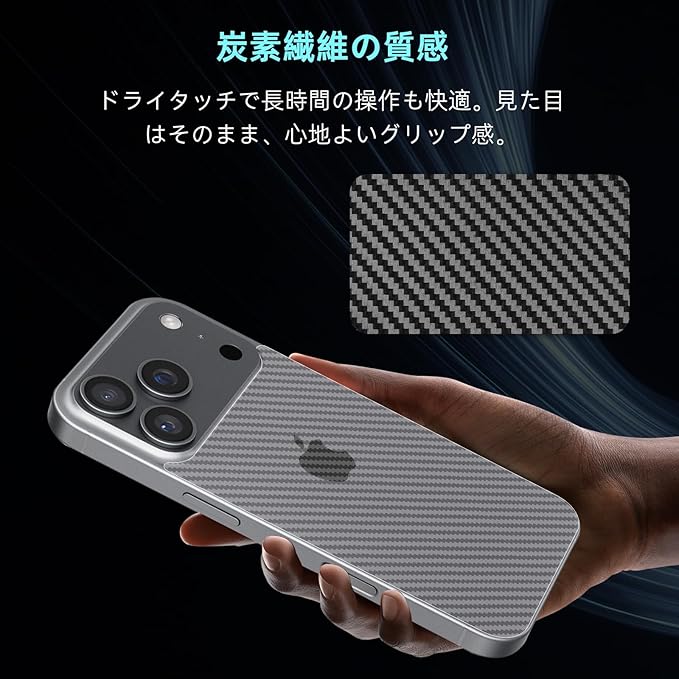 【高品質の素材】業界最高レベルの炭素繊維に素材を採用し、ハードコーティング技術を加え、フィルム表面のハードコート層によりスマートフォン本体のフラットな面をきれいな状態に保ちま、背面の清潔を保つことができます、上品でエレガントな印象を与えます