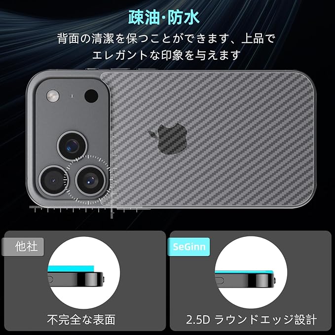 SeGinn【3枚セット】iPhone 17 Pro 対応 背面フィルム 炭素繊維素材 アイフォン 17 pro 用 フィルム 柔らかい 背面保護 スクラッチ防止 超薄 気泡なし 指紋防止 防汚コート 貼り付け簡単 iPhone 17 pro 対応 保護フィルム | KAZESHOP
