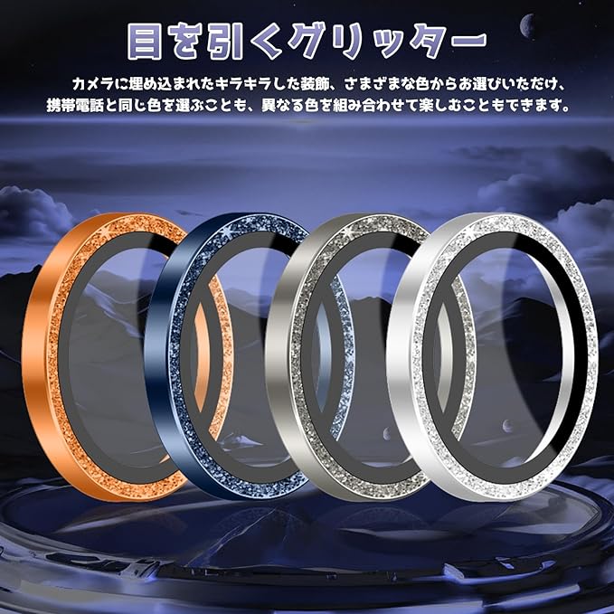 【洗練された輝きが魅力のデザイン】上品なラメ加工が施された個別リングデザインは、iPhoneの洗練された印象をさらに高めます。見る角度によってキラリと輝くため、ファッションアイテムとしても注目度抜群。高品質感を演出しながらiPhone 17 Pro Max/17 Proカメラカバーとしての保護性も確保。