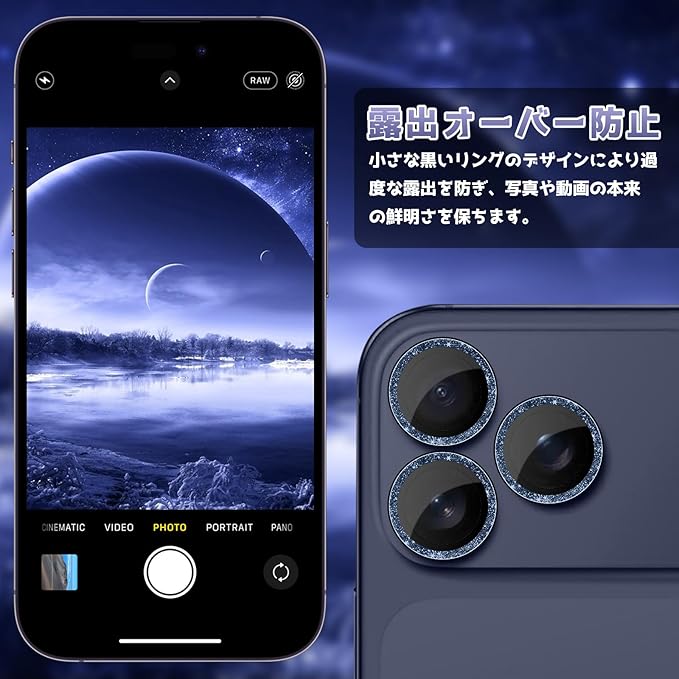 【SinRenn】対応 iPhone 17 Pro/Pro Maxカメラフィルム カメラカバー キラキラ 9H強化ガラス アルミ合金 レンズ保護 アイフォン17プロ/17プロマックス用 カメラ保護 ピカピカ キズ防止 全面保護 耐衝撃 AR高透過率 カメラカバー 黒縁取り 露出オーバー防止 簡単貼り付け 極薄 レンズカバー プロテクター いphone17pro max/proカメラ保護(ブルー) | KAZESHOP