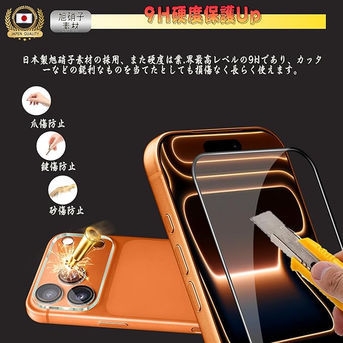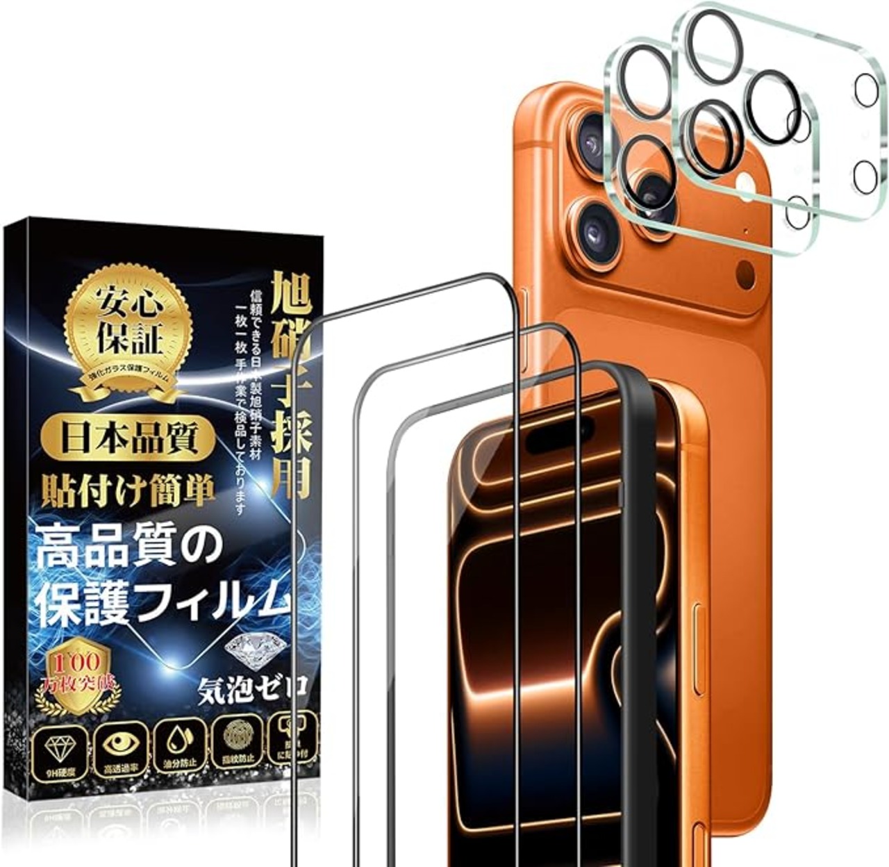 【 ご注文前にご確認下さい 安心保証】 365日内商品使用上何か問題がある場合、お気軽に弊社までご連絡くださいませ。お客様からのお問い合わせ内容に応じて返金対応を提供致します。(商品の返送は不要、お一人様につき1回限り)iP 17Pro 対応ガラスフィルム+カメラフィルム+ガイド枠4枚セットです。新品に保護を提供いただき、別に買うために行く必要はございません。万が一強力な衝撃でガラスフィルムが割れてしまっても、破片の飛び散りを防ぐ飛散防止コート処理で、画面をしっかり保護、スマートフォン をよく保護できます。