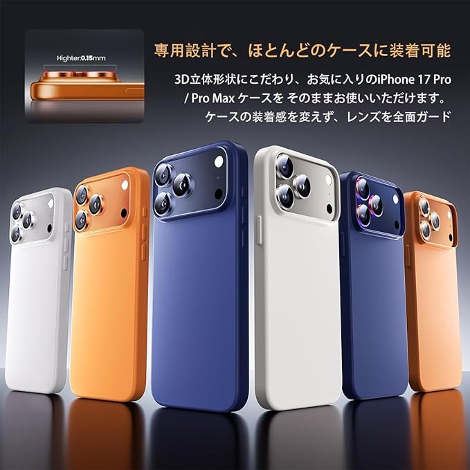 【付属品】レンズプロテクター3枚 1セット、位置合わせガイド、クリーニングキット、取外し用ツール、マニュアル。詳細なセットアップビデオとよくあるご質問、12ヶ月フル保証、生涯対応、個別サポート。対応機種:for iPhone 17 Pro / 17 pro max ケース