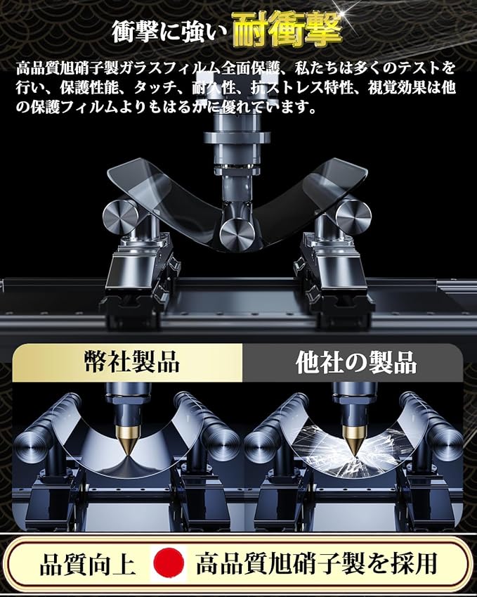 【旭硝子素材採用!対応機種】iPhone 17 Pro Max 強化ガラスフィルムは国産朝日ガラス素材を使用しており、業界最高硬度9Hで、耐衝撃性、耐擦傷性に優れています。衝撃吸収特性により、落下や外部からの力によるスマートフォンの画面へのダメージを最小限に抑えます。