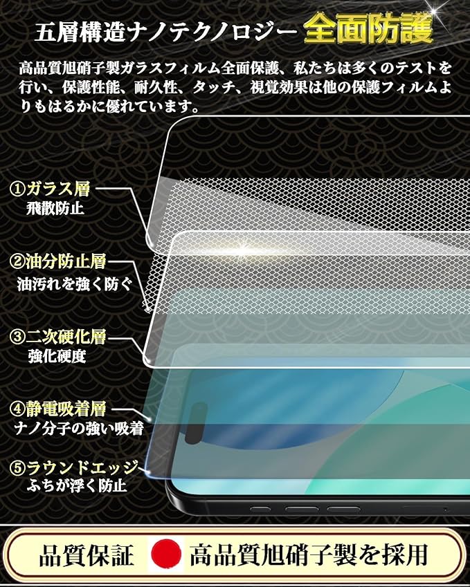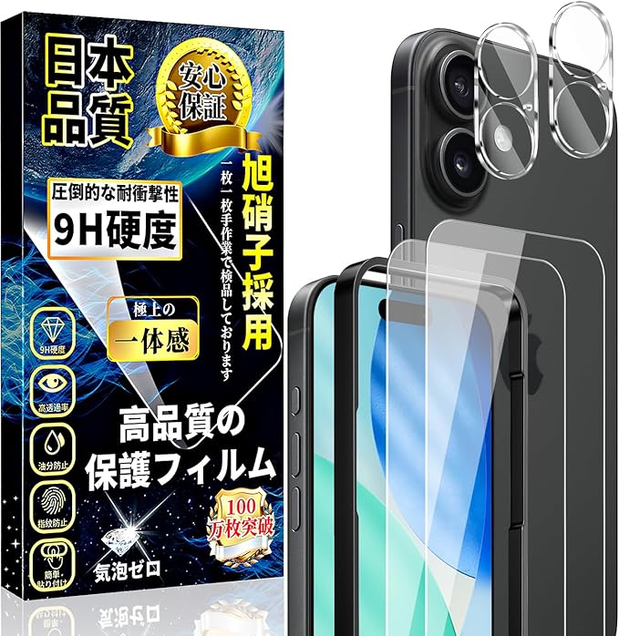 【旭硝子素材採用!対応機種】iPhone 17 2枚ガラスフィルム+2枚カメラフィルム は日本製の旭硝子を素材として採用し、業界最高レベルの9H硬度を持ち、耐衝撃性と耐傷性に優れています。衝撃吸収の特性により、転落とかの外力からスマホ画面への衝撃ダメージを最小限に抑えることができます。