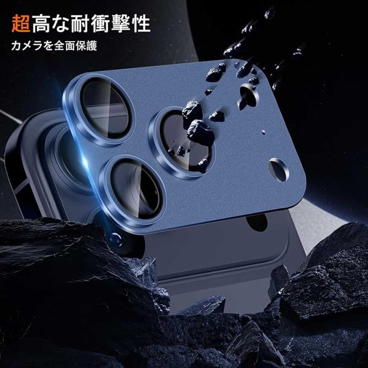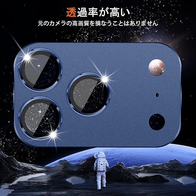 カメラフィルム iPhone 17 Pro 対応 カメラ レンズ 保護カバー アイフォン17pro 用 レンズ保護フィルム アルミ合金 耐スクラッチ 耐衝撃 カメラカバー (ブルー) | KAZESHOP