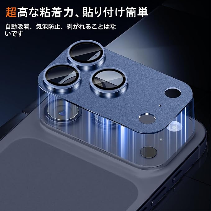 【対応機種・簡単貼り付け】iPhone 17 Pro 対応 カメラ保護フィルムです。ご注意: ご購入前、ご設備の型番をご確認いただきます。フィルムのシリコン自己吸着層により、位置を合わせて上から軽く置くだけで気泡が入ることなく簡単に装着できます。薄くて軽いデザインで、まるで携帯自体だけを持っているような感じです。