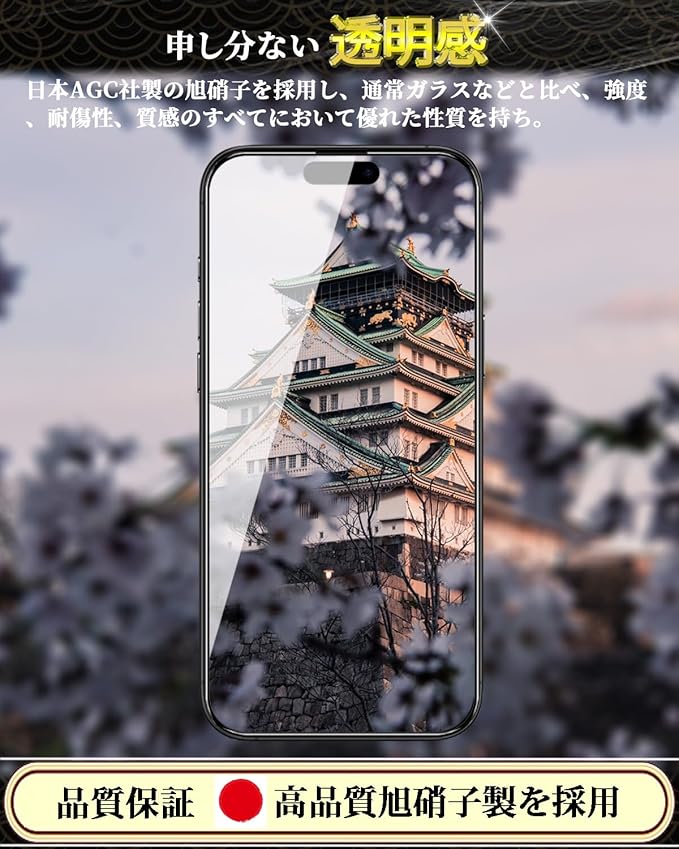 【旭硝子素材採用!対応機種】iPhone 17 Pro Max 強化ガラスフィルムは国産朝日ガラス素材を使用しており、業界最高硬度9Hで、耐衝撃性、耐擦傷性に優れています。衝撃吸収特性により、落下や外部からの力によるスマートフォンの画面へのダメージを最小限に抑えます。