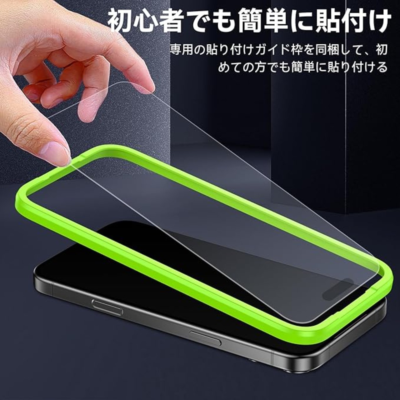 【初心者でも貼り付け簡単】初めての方でも簡単に貼り付けられるよう、専用の貼り付けガイド枠を同梱しています。携帯本体と保護フイルムがズレることなく、だれでも簡単にガラスフィルムを貼ることができます。