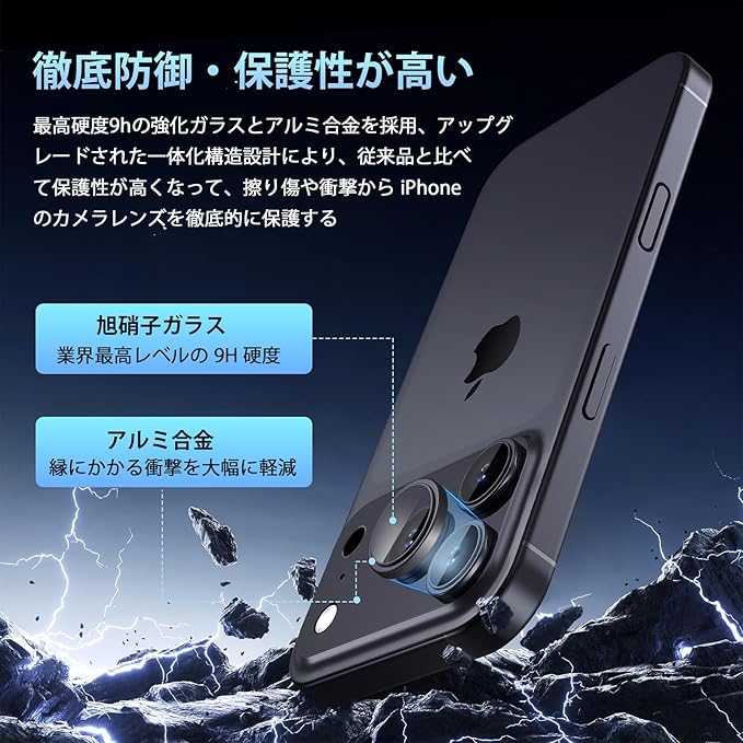 【キズ防止】 いphone17proレンズカバーの真ん中にAR超高透過率ガラスを採用され、レンズフィルムの周りにアルミニウム材質を採用、9H硬度で擦り傷や衝撃からカメラレンズを全面保護します。アルミ合金製なので耐久性は普通のガラス製のカメラフィルムより10倍アップ!保護性が高いです。