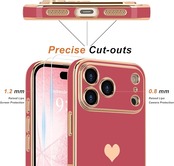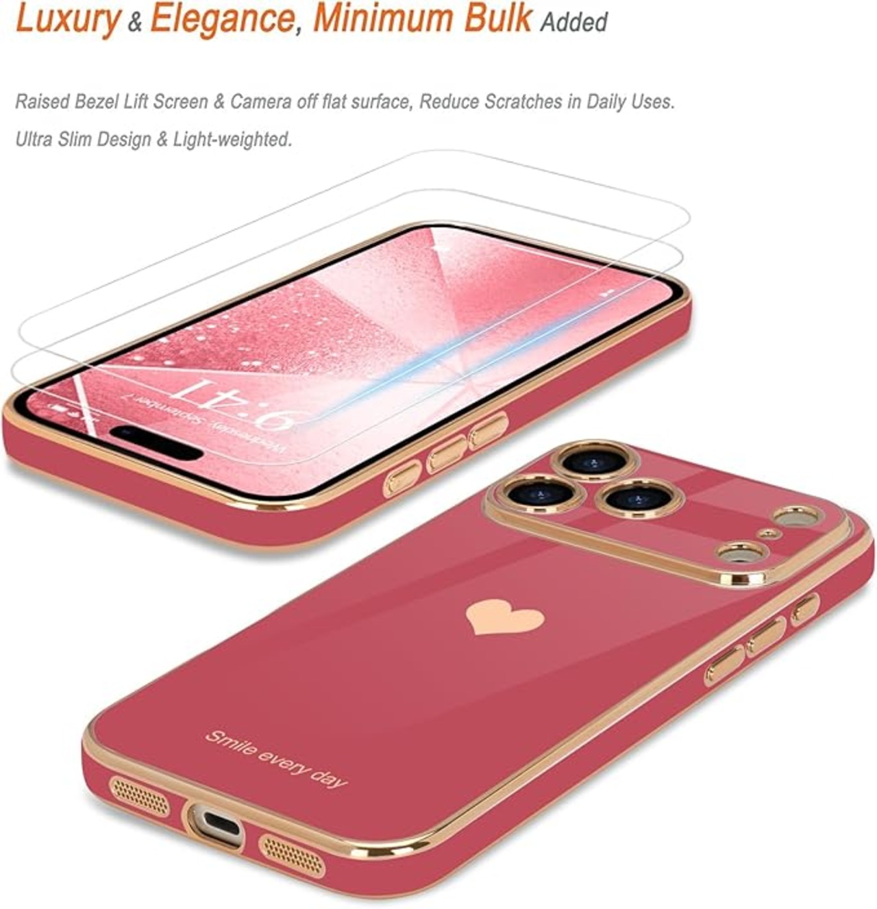 Teageo iPhone 17 Pro 用 ケース 【1枚ケース+2枚ガラスフィルム】 全面保護 女の子 可愛い おしゃれ ハート スマホケース 薄型 耐衝撃 落下防止 メッキ加工 アイフォン 17 Pro 適用 保護カバー(カメリアレッド) | KAZESHOP