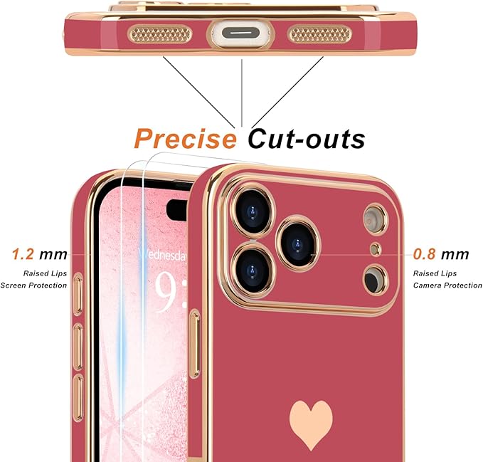 【高級デザイン】 メッキ技術は、トリムと愛のハートパターンを飾るために適用されます、中央にプリントされた大きなハートが気分を明るくする、シンプルで可愛いデザイン。それはこのアイホン 17 Proケースをスタイリッシュで目を引く、女の子や女性のための素敵な贈り物になります