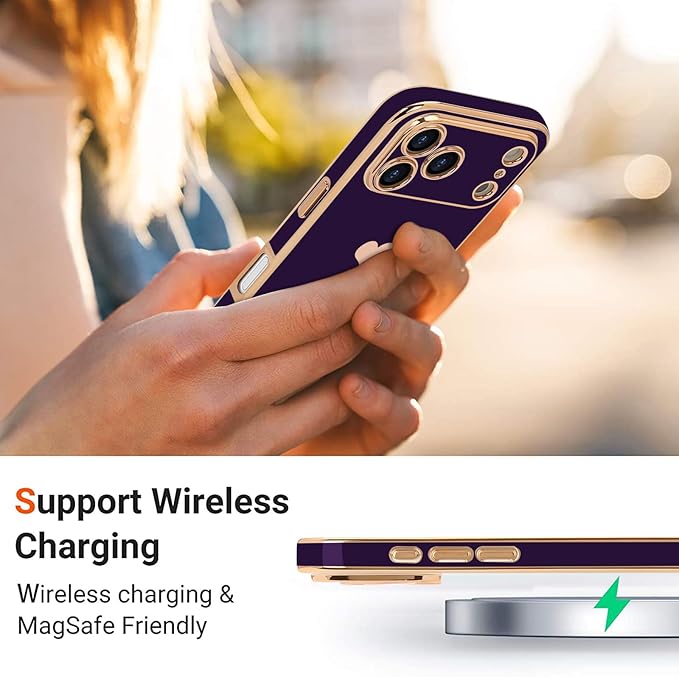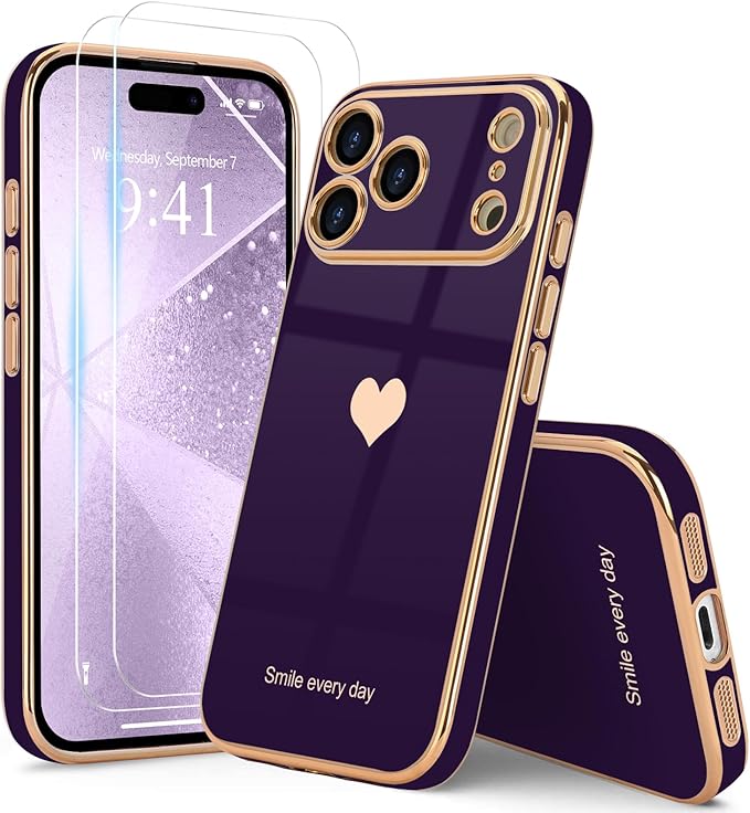 Teageo iPhone 17 Pro Max 用 ケース 【1枚ケース+2枚ガラスフィルム】 全面保護 女の子 可愛い おしゃれ ハート スマホケース 薄型 耐衝撃 落下防止 メッキ加工 アイフォン 17 Pro Max 適用 保護カバー(ディープパープル) | KAZESHOP