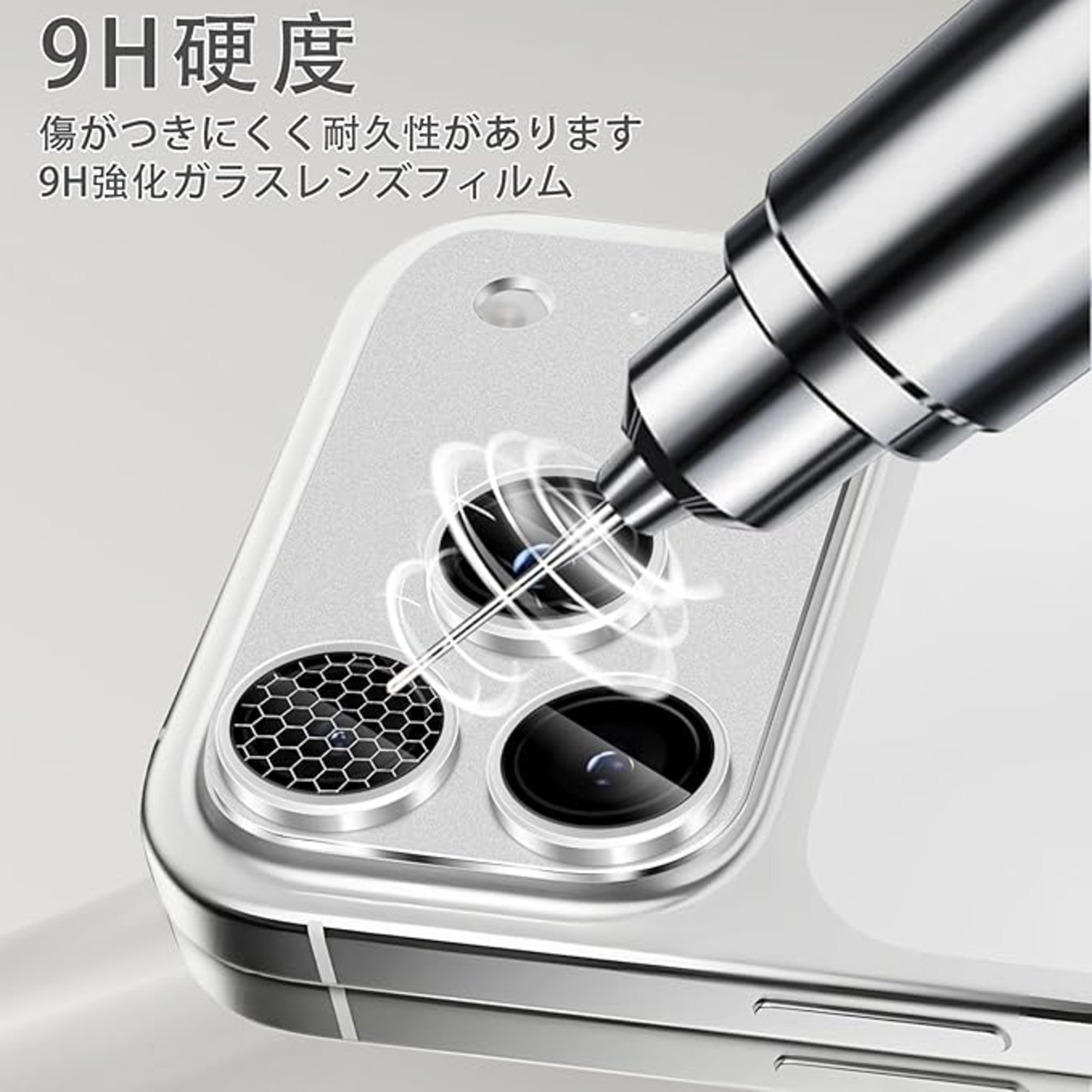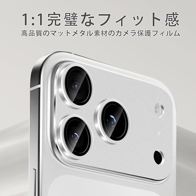 カメラフィルム iPhone 17 Pro専用 カメラ保護 9H強化ガラス アルミ合金 レンズカバー 超高透過率 アイフォン17プロ対応 一体型 耐衝撃 キズ防止 露出オーバー防止 気泡ゼロ カメラカバープロテクタ シルバー | KAZESHOP