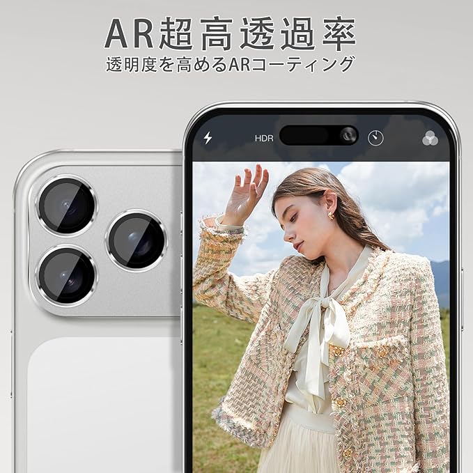 【携帯電話ケースに対応・スマホケースと干渉なし】本体に沿って精密に設計され、カメラレンズにぴったりとフィットします。引っかかり感がなく、ほとんどのケースと干渉しません。フィルムを貼った後でもスマホ本来の上質な美しさと高級感を損なわず、いつものスマホに上品さをプラスします。