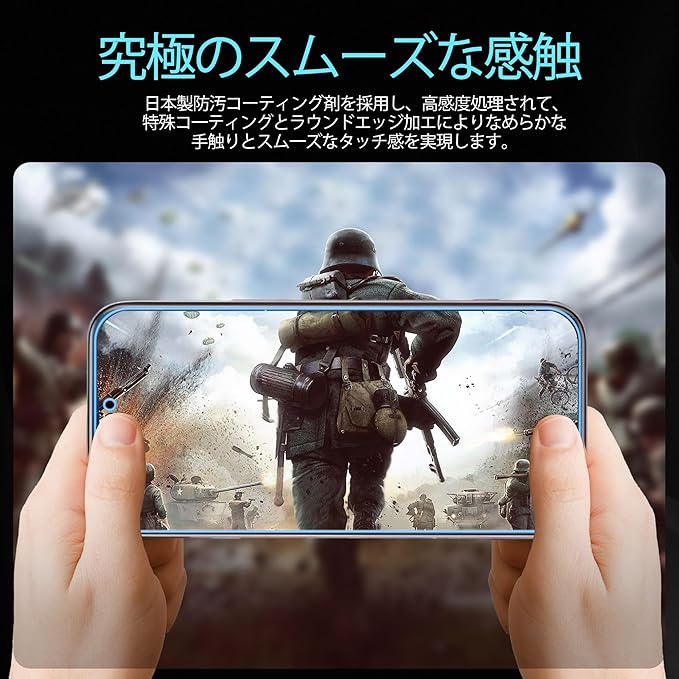 特徴 ブルーライトカット、専用の貼り付けガイド枠を、目に優しい 、硬度9h、指紋・汚れ防止、傷や衝撃に強い、国産薄型ガラス