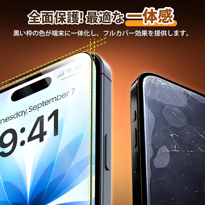 【宇宙用先端材料・強力な保護力】iphone 17 用ガラスフィルムには、日本製の高強度宇宙用先端材料ガラス材料を採用し、表面硬度9Hに達します。一般的な熱強化処理を行った後に、6500 の二次硬化処理を行って、落下に対する耐性が非常に高いです。日本国内で累計10万枚以上販売されており、画面の破損記録はゼロです。