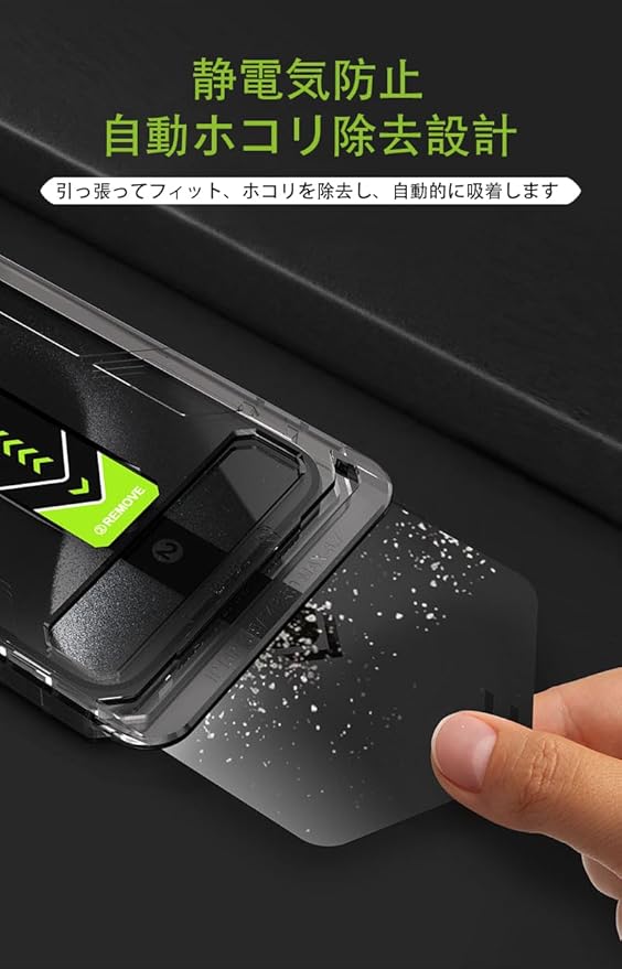 気泡・ズレの心配なし|専用の無塵ボックス付きEasyAppケースで、ほこりを遮断しながらまっすぐ貼れる。貼りやすい設計で、初心者でも3ステップで簡単に仕上げられる保護フィルム。