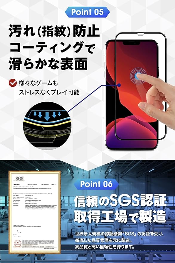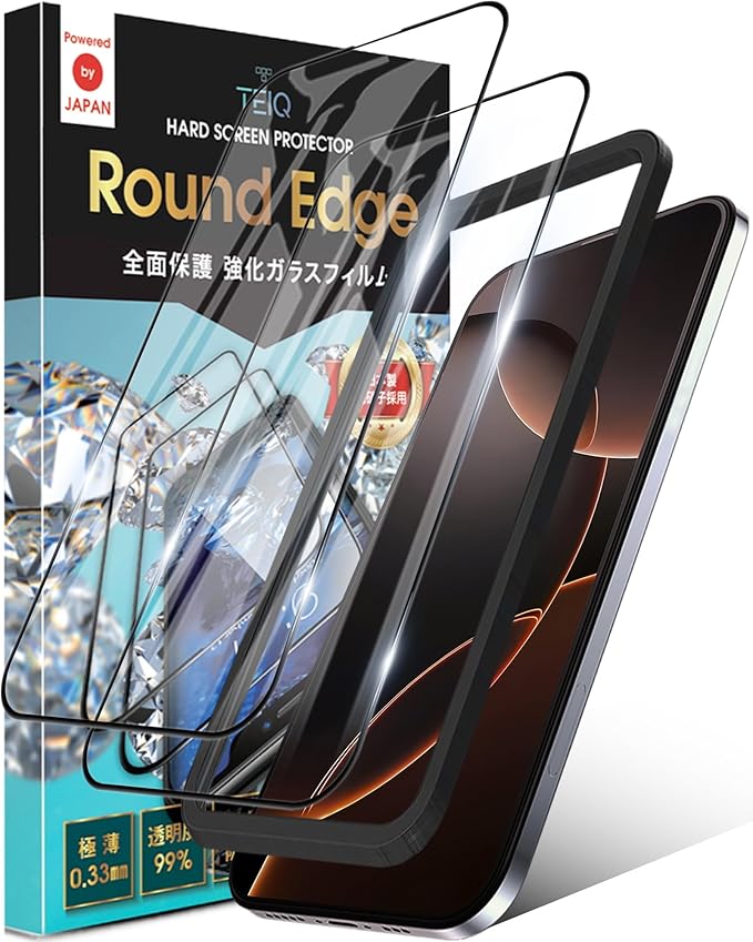 ✅【 信頼度の高いジャパンクオリティ 日本製 旭硝子採用 】 TEIQ の ガラスフィルム は外国製の粗悪なガラス ではなく、品質グレードAAAの『高品質』の日本メーカー 旭硝子製の 硬度 10H の 強化ガラスフィルム を採用しています。 透過率は『99.9%』と何もつけていない状態と間違うほどの透明感を実現。 さらに、指紋・汚れが付着しにくい 『 指紋防止 コーティング』を施し、滑らかな表面となっているので汚れから守りながらもより良い操作性を実現した 液晶保護フィルム です。