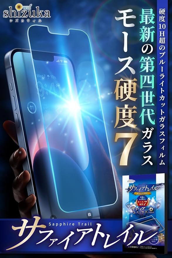 シズカウィル iPhone 17 用 / 16 Pro 用 ガラスフィルム 強化ガラス 気泡レス 保護フィルム フィルム モース硬度7 サファイアトレイル ブルーカット 液晶保護フィルム 1枚入り | KAZESHOP