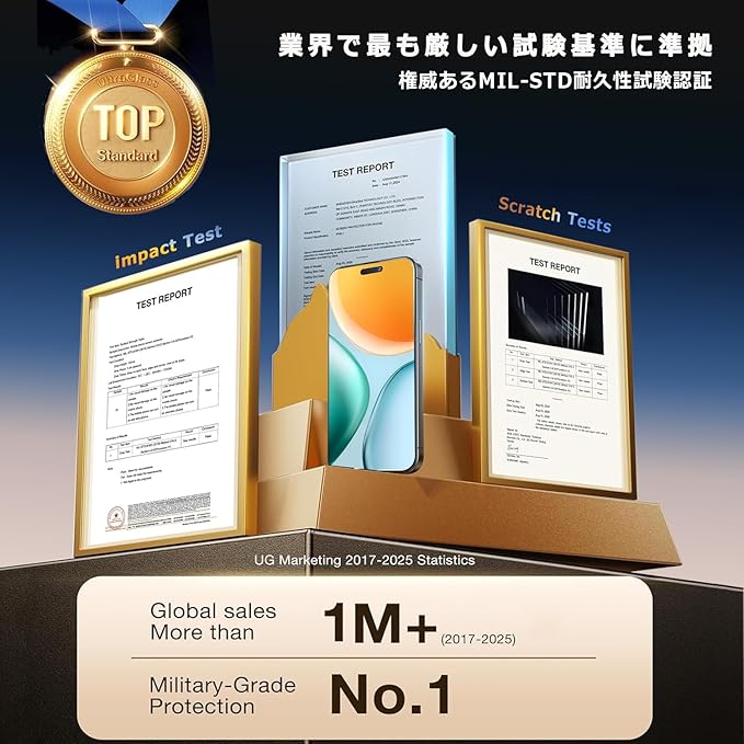 2.✈️軍用規格航空材料 10H硬度:米軍規格航空材料を基材に1200℃高温焼結を実施。硬度10Hと耐衝撃性を両立し、3m落下テストを突破。強化ガラス内部の圧縮緩衝層が衝撃エネルギーを分散、飛散防止加工で破損時も安全を確保。鍵や硬貨との接触にも無敵のスクラッチ防止性能を発揮します。