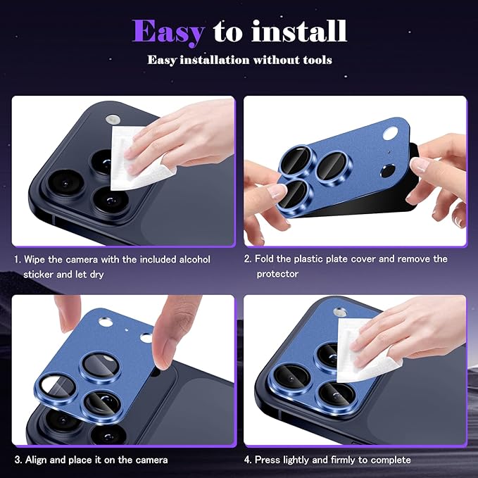 カメラカバー コンパチブル iPhone 17 Pro カメラフィルム アルミ合金一体製 カメラ保護 9H強化ガラス 全面保護 耐衝撃 高透過率 黒縁取り 露出オーバー防止【1枚】貼り付け簡単 カメラフィルム アイフォン17 Pro 対応 - インクブルー | KAZESHOP