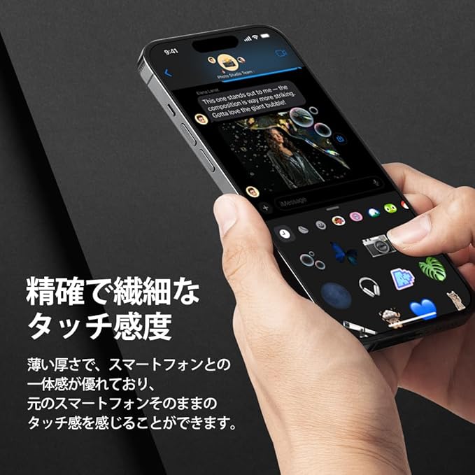 【優れたタッチ感度】 0.27mm厚で、99%の応答感度とタッチを維持し、迅速なアプリの起動、スムーズなゲームとビデオの再生を保証します。フィルムを貼ったときの一体感が優れており、まるでフィルムを貼っていないかのような自然な感覚を提供します。
