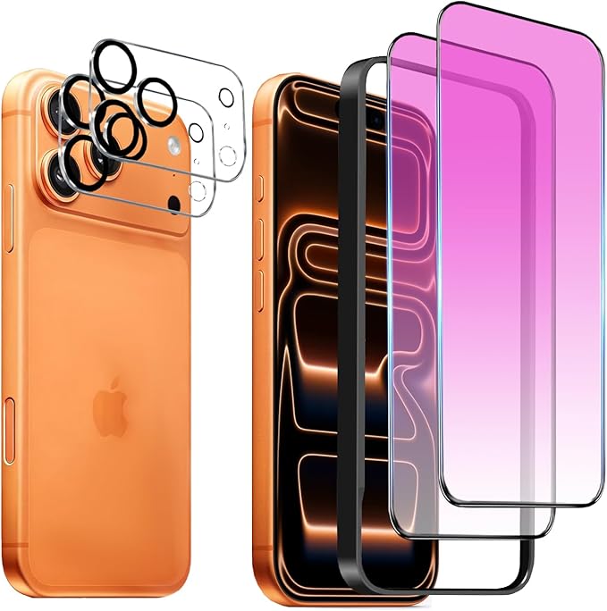 【4枚入り】iPhone 17 Pro ガラスフィルム 6.3インチ ブルーライトカット 全面保護フィルム 目の疲れを軽減 硬度10H 滑らかなタッチ操作 指紋付着防止 気泡防止 ガイド枠付き 貼り付けは簡単 【アイフォン17 プロ 強化ガラスフィルム(2枚入り)+レンズ保護フィルム (2枚入り)】 | KAZESHOP