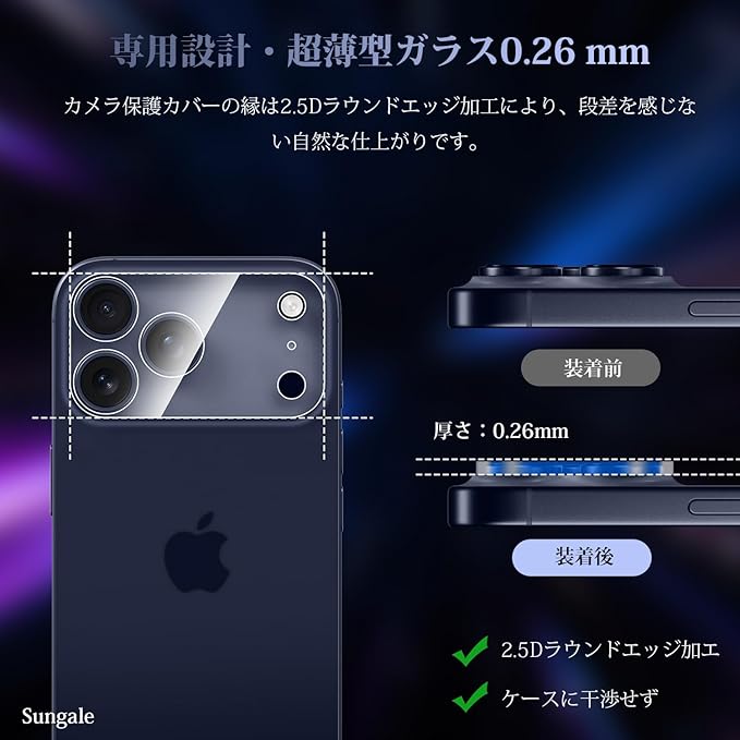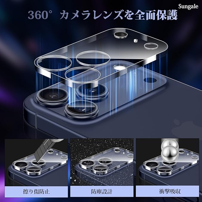 Sungale いPhone17ProMax カメラ保護 カメラフィルム iPhone17Pro Max カメラ保護 カバー 强化ガラス 黒縁取り 極薄 アイフォン17プロマックス カメラレンズ保護カバー 全面保護 3眼レンズ保護 露出オーバー防止 防塵 iPhone 17 Pro Max 対応 カメラフィルム (2枚セット) | KAZESHOP