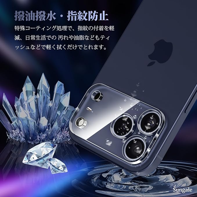 【撥水撥油・指紋防止】極薄カメラ保護フィルムに高耐久撥油コーティングが施され、指紋や汚れが付きにくくなります。そして、指紋にも簡単に拭き取ることができます。