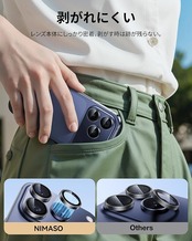 「ARコーティング・超高画質維持」最先端のAR(Anti-Reflection)コーティング技術により、高透過率を達成しました。レンズ周囲を黒縁仕上げにすることにより、フラッシュ時の乱反射を抑え、写真の白飛びを防止。iPhone本来の撮影画質を損なわず、フレアやゴーストを大幅に低減し、夜間撮影もクリアな画質をキープします。革新的な製造技術を融合した高い品質で、アイホン 17pro/17promax/15pro/15promaxのカメラ本来の高画質と優れた描写性能を十分に生かす商品です。
