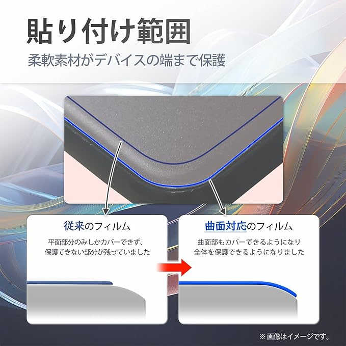【曲面対応】優れた柔軟性でデバイスの曲面にも貼り付けることが可能です。