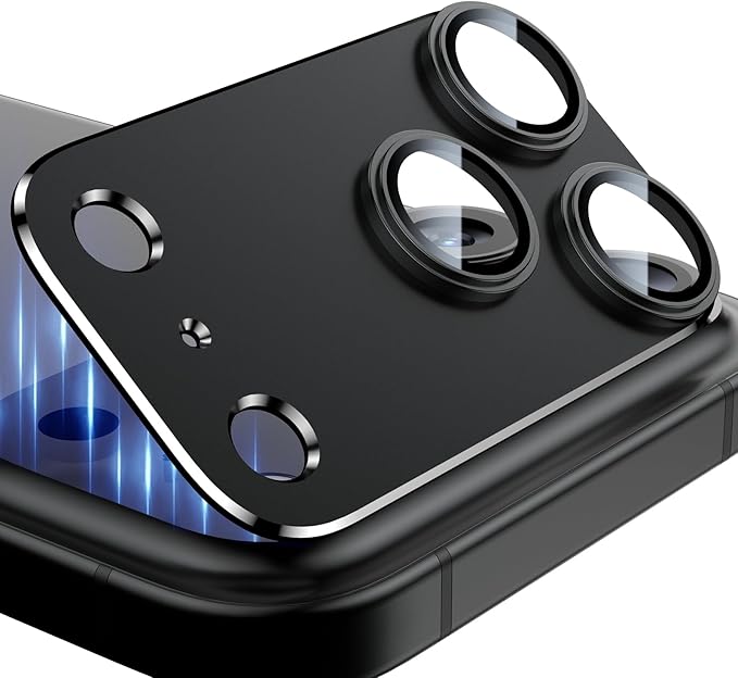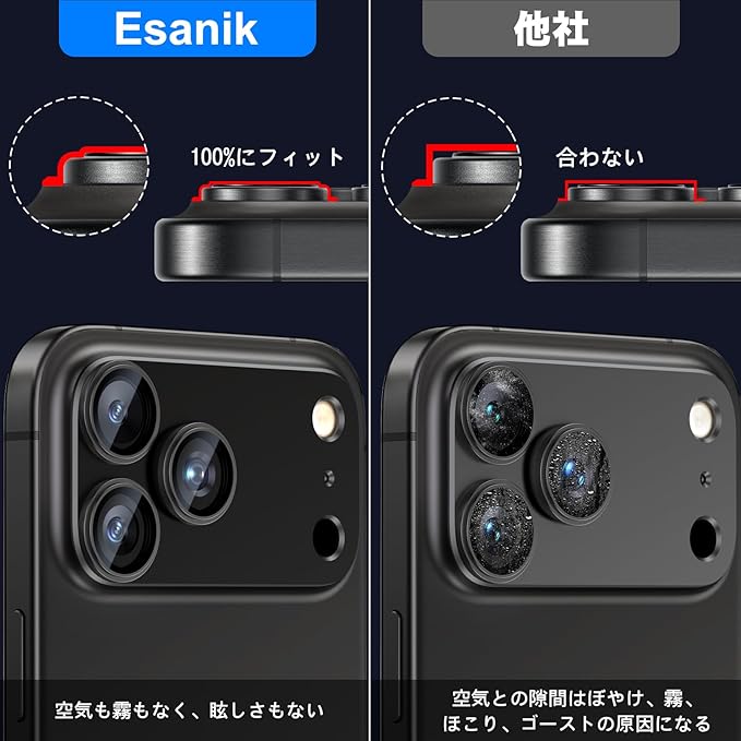 Esanik 【2枚セット】 iPhone 17 Pro用 カメラフィルム アルミ合金製 カメラ保護 レンズカバー レンズ保護 強化ガラス 耐衝撃 擦り傷防止 3レンズ保護 露出オーバー防止 レンズ保護フィルム アイフォン17プロ対応 ブラック | KAZESHOP