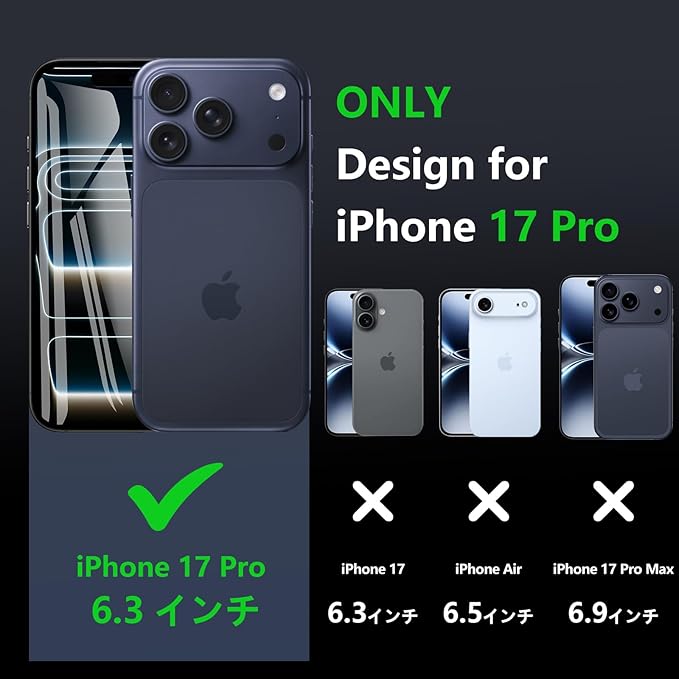 【対応機種:iPhone 17 Pro&同梱品】iPhone 17 Pro(2025、6.3インチ)専用設計のスマートフォンケースで、対応機種を間違いないようにご購入お願い申し上げます。ガラスフィルム付き、カメラレンズカバー付き、厳選された耐衝撃素材、正確なカット、おしゃれな半透明デザインで、コスパが良い、実用性、利便性、耐久性、操作性の高い iPhone 17 Pro ケース です。老若男女、いつでもどこでもフィットする いphone17pro ケース です。同梱品:1.iPhone 17 Pro ケース*1 2.iPhone 17 Pro ガラスフィルム*1 3.iPhone 17 Pro カメラレンズカバー 4.セットの貼り付けツール*1
