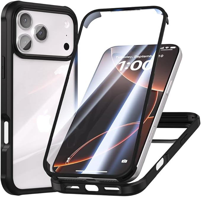 【両面!全面保護!】McDuLL iPhone 17 Pro 用 ケース 6.3 インチ 360度保護 9H強化ガラス+PC素材+TPUバンパー 耐衝撃性 擦り傷防止 薄型 Qi充電対応 軽量 落下防止 指紋防止 アイフォン17 プロ 用 カバー (ブラック) | KAZESHOP