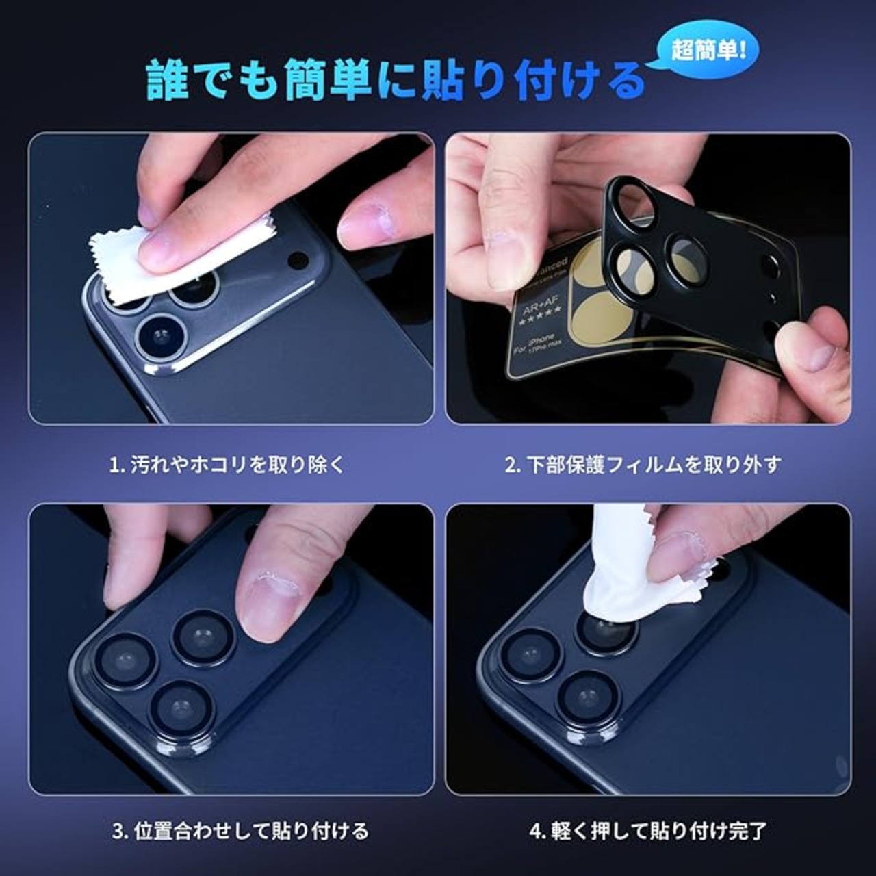 【360 全面保護・保護力満点】対応 いPhone 17 Pro Max カメラ保護フィルムは、本体カメラを全面覆うフルガードタイプです。レンズ部分だけではなく、カメラ部分の四角い台座まで覆って、全体を密着して保護しながらカメラレンズの中にホコリの巻き込まれも防止できます。レンズに強力な保護層を追加し、レンズ表面を清潔で傷のない状態に保ち、レンズの寿命を効果的に延ばすことができます。
