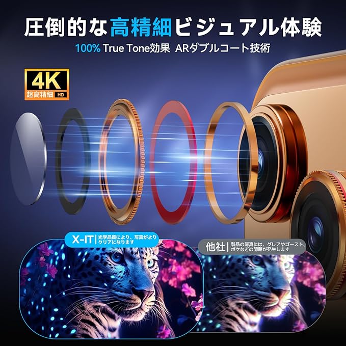 【軍用グレードのカメラレンズプロテクターで、過酷な冒険をサポート】X-it for iPhone 17 Pro/Pro Maxカメラ保護フィルムは、強化チタン合金のエッジと12KGの強固な圧着加工により、軍用グレードの耐落下性と耐衝撃性を備えています。ハイキング、スキー、ビーチでの使用に最適です。iPhoneのカメラレンズを砂や岩、不意の落下から守ります。