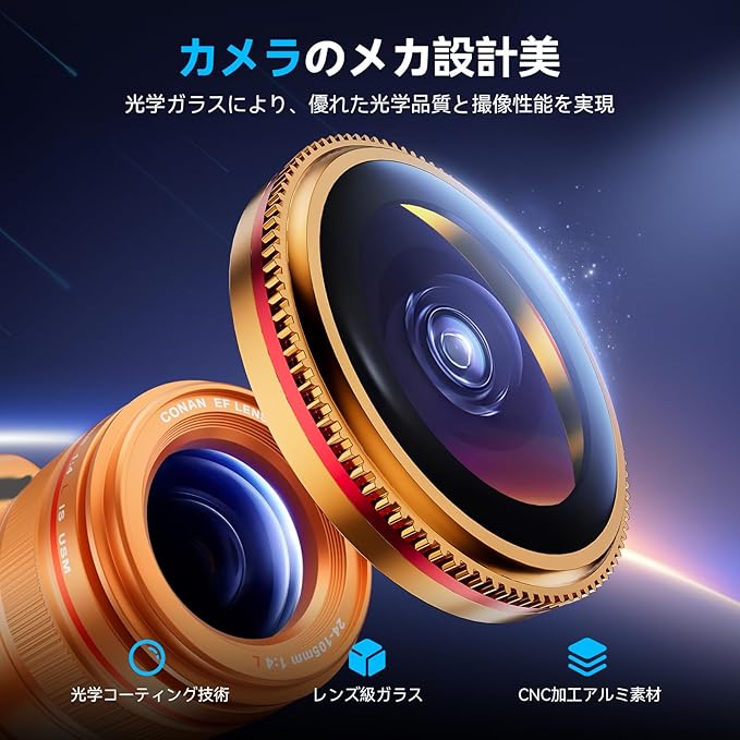 【独創的なメカニカルデザイン美学】このいPhone 17 Pro/Pro Max 用カメラ保護は、機械式ギアをインスピレーション源としたデザイン。赤いリング状のアクセントと、ブラックのスポットライトレイヤーが、お使いの iPhone に高級感あふれるテクノロジー感をプラスします。