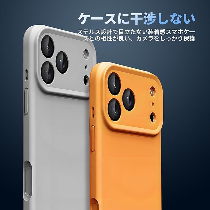 【一体感にフィット・ハウジングと干渉しない】対応 iPhone 17 Pro / 17 Pro Max カメラ保護カバーは、レンズに完璧に調和するために、PVDコーティングを採用し、レンズ本体と同じ色合いと質感を忠実に再現しました。1:1の精密加工技術により、レンズと自然に溶け込むような一体感を達成。レンズ部分だけを包む独立したデザインで、ケースに干渉せず、好きなデザインを思いのままに選べる自由さを。