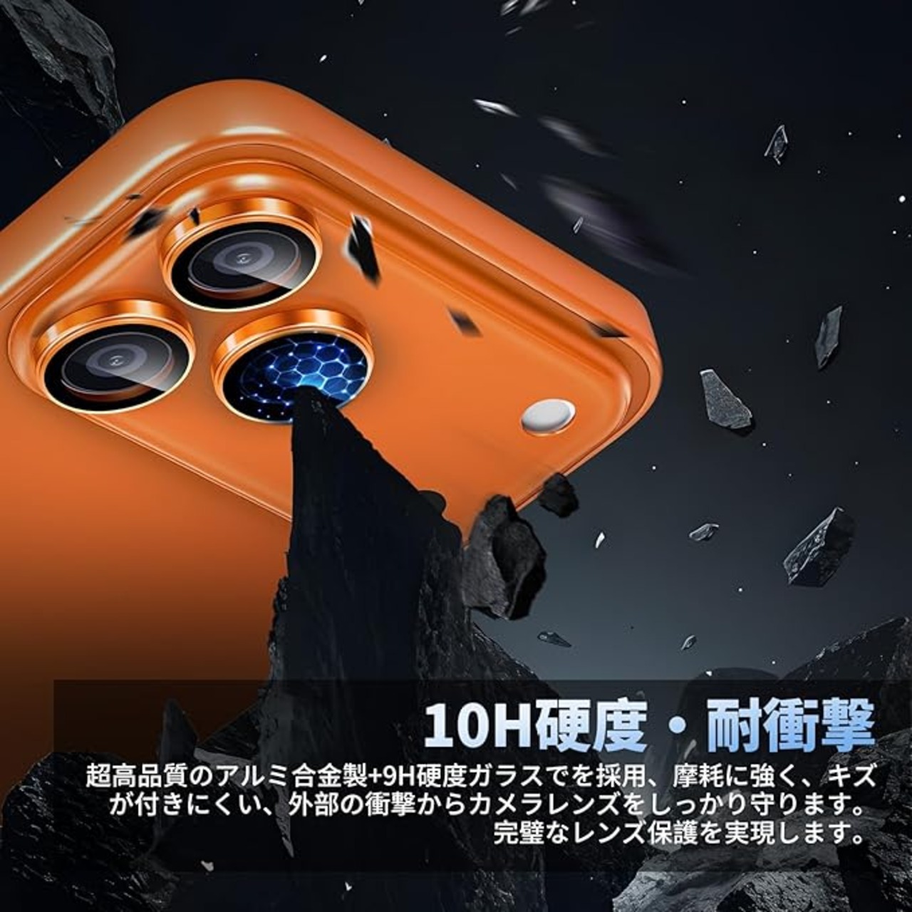 【優れた耐衝撃性・保護力満点!】硬度10Hの超強化ガラスと耐摩耗性に優れた航空用アルミニウム合金をよく組み合わせたカメラカバーは衝撃を効果的に吸収し、衝撃を最小限に抑えることができる。鍵やカッターなどの鋭利な物品が接触いたしましても、傷が付きにくい設計となっており、日常のご使用においても安心でございます。さらに、特殊な飛散防止設計により、万が一ガラスが割れても飛び散らないので、安心してお使いいただけます。
