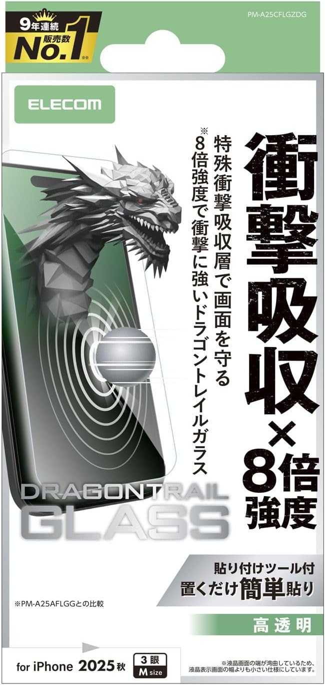 エレコム iPhone 17 Pro ガラスフィルム 光沢 ドラゴントレイル 衝撃吸収 硬度10H 指紋がつかない SHOCKPROOF 気泡が入らない 【貼り付けツール付き】 PM-A25CFLGZDG | KAZESHOP