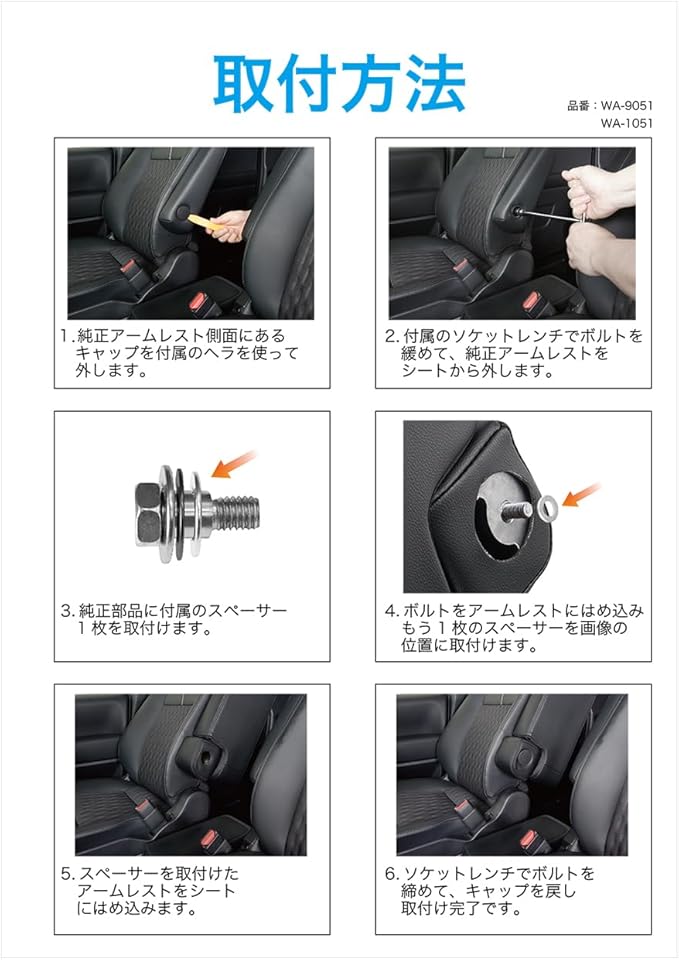 ご使用の前に必ずお読みください ・年式、形式をご確認のうえご購入ください。 ・本製品は純正交換品のため純正アームレストのボルトなどを使用します。 ・本製品を使用する際はしっかりと装着されているかご確認ください。 ・アームレスト脱着による車輌や車載品の破損、故障、事故などの付随的損害、使用上の誤り及び過度の使用などにより発生した不具合などに対し、当社は一切の責任を負いかねます。 ・本製品に乗るなどの負荷をかける行為はしないでください。破損の原因になります。 ・本製品に多少小傷などがある場合がありますが、ご使用に支障のない限り交換や返品はお受けかねます。