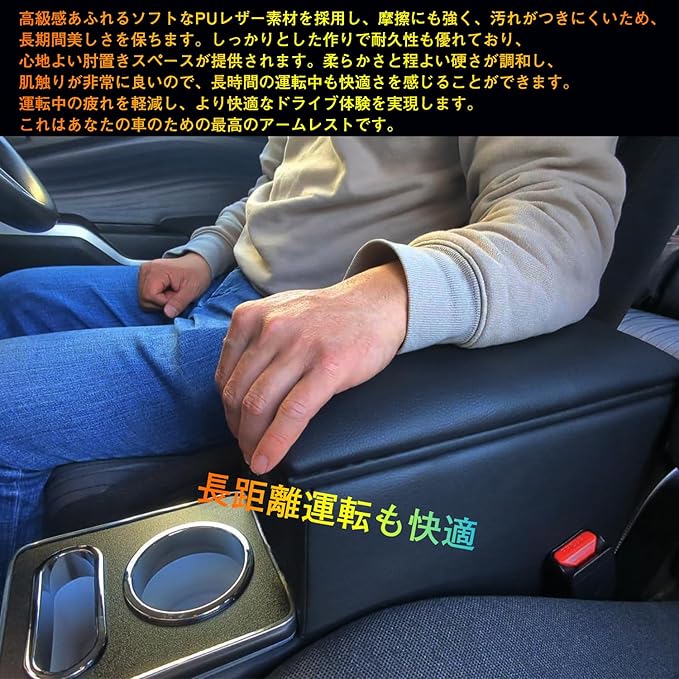 多機能収納&アームレスト|快適ドライブを実現 スマートキーやスマホ、財布、小物類をしっかり収納。アームレストとしても活躍し、長時間運転の疲労を軽減します。ドリンクホルダー付きで水筒や飲み物も安定して置け、運転中の利便性が大幅アップ。