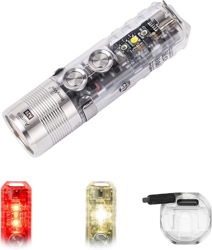 A28 G2 1000ルーメンの超高輝度EDC懐中電灯、USB C充電式850mAhバッテリーポケットキーホルダー懐中電灯、赤/白のサイドライト付き、屋外毎日の持ち運び、キャンプ用 | KAZESHOP