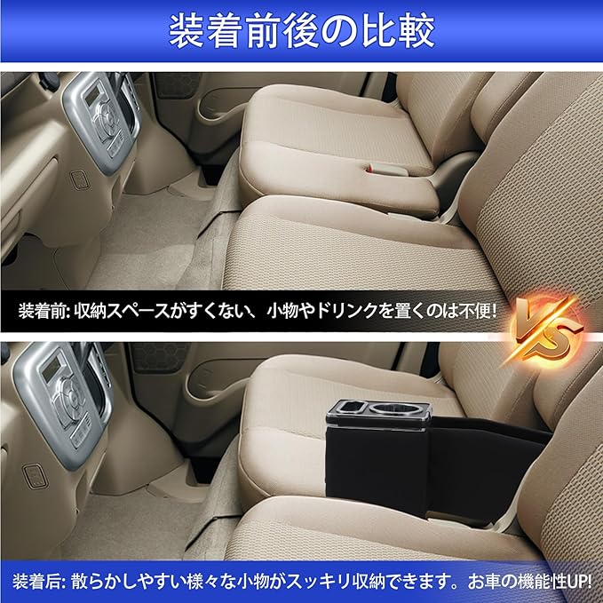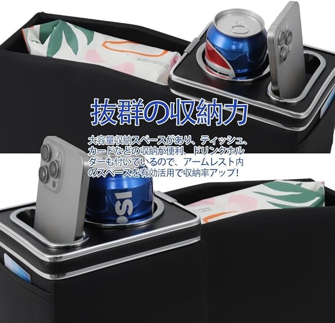 【抜群の収納力】車内の限られた室内空間を最大限に利用できます!携帯電話、ドリンク、財布、データケーブル、キーケースその他の小さな物は保管する場所がなく、不便で、車は非常に散らかっています。AHWZのこのコンソールボックスは、前面に携帯ホルダー1つとドリンクホルクー1つがあり、とても便利です。後ろの収納ボックスは、上のアームレストを持ち上げて収納スペースとして使えます。CD、ティッシュペーパー、缶詰など場所を取る物もスムーズに収納できます。