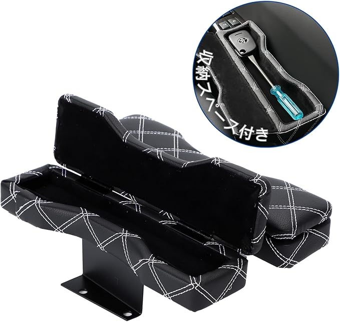 【多機能性】このアームレストは、ただの肘置きではありません。小物を収納できるスペースがあり、車内を整理整頓するのに役立ちます。必要なものをすぐに取り出せる便利さを提供します。