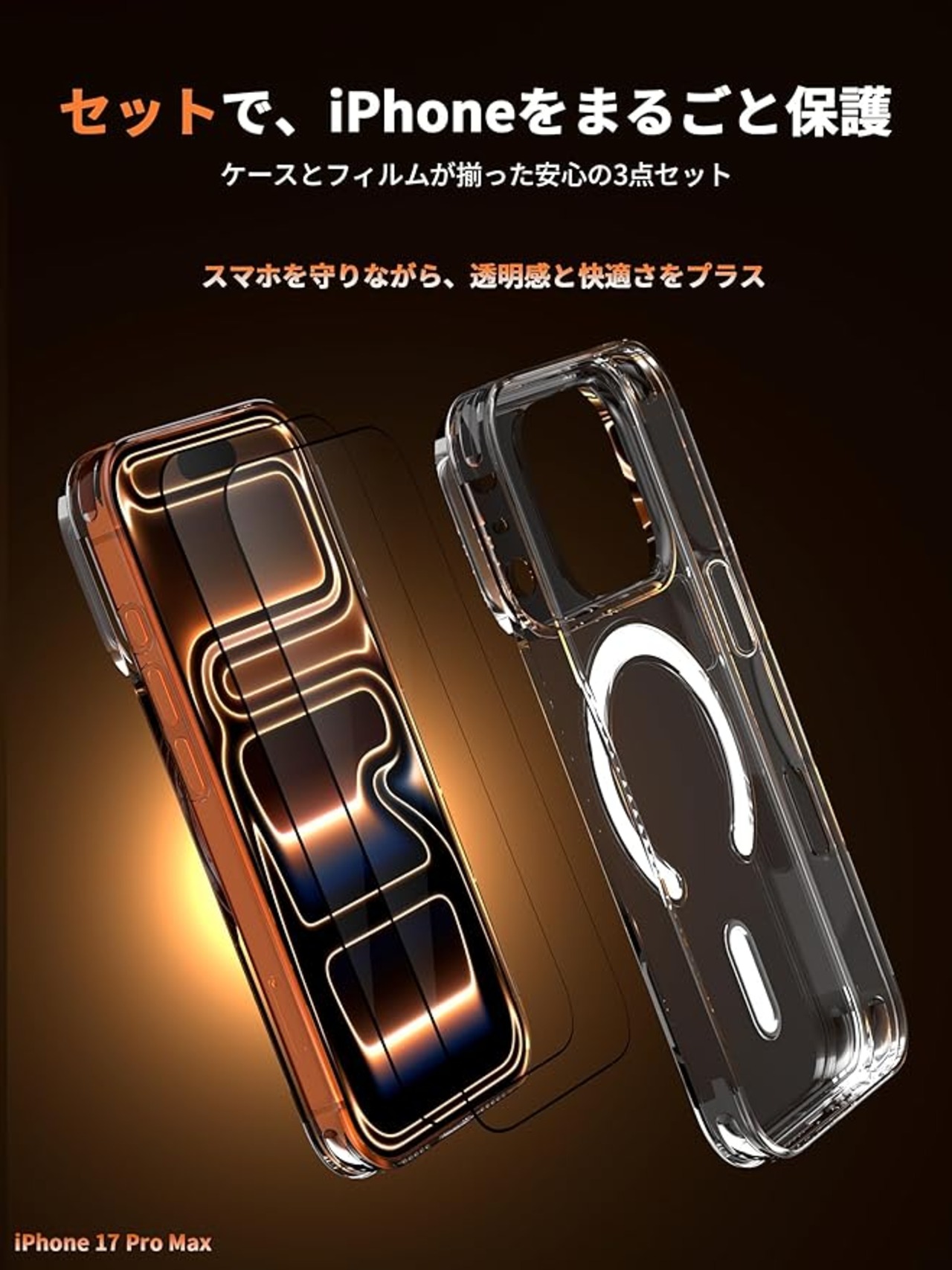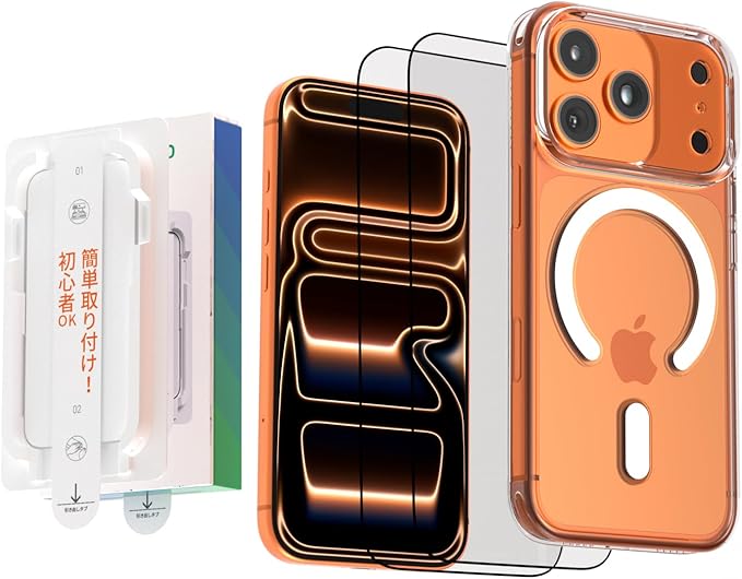 【3点セットでコスパ抜群&全面保護】iPhone 17 Pro対応のクリアケース+9H強化ガラスフィルム2枚入り。ケースは縁高設計と四隅エアクッションで衝撃を吸収し、フィルムは飛散防止加工で画面割れを防止。別々に購入する手間とコストが節約でき、新たなiPhoneを即座に完璧にガードできます。