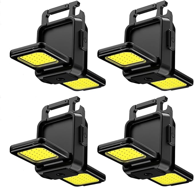 MGOXO【2024年業界最新折りたたみ】COBライト4個 小型LEDプロジェクター LEDミニライト COB LEDライト ミニキーホルダーライト カラビナライト USB充電式 1000ルーメン 超高輝度 5つのライトモード IPX4防水 強力マグネット付き ボトルオープン機能付き キャンプや登山に夜 夜釣り 停電 地震 非常照明 | KAZESHOP
