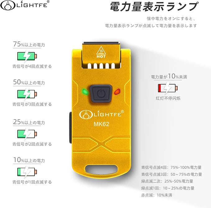 電池残量不足警告信号灯が付いており、電池残量或いは充電状況がすぐにわかり、使いやすいです。