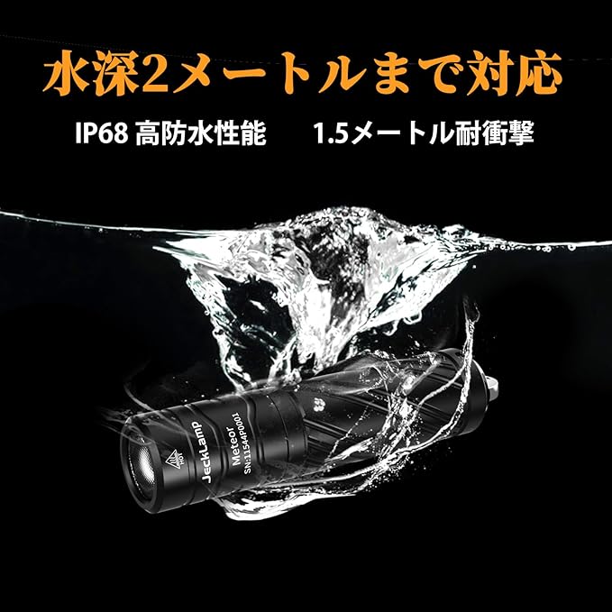 耐久性能: IP68防水規格対応。アルミニウム合金製ボディで耐衝撃性も確保