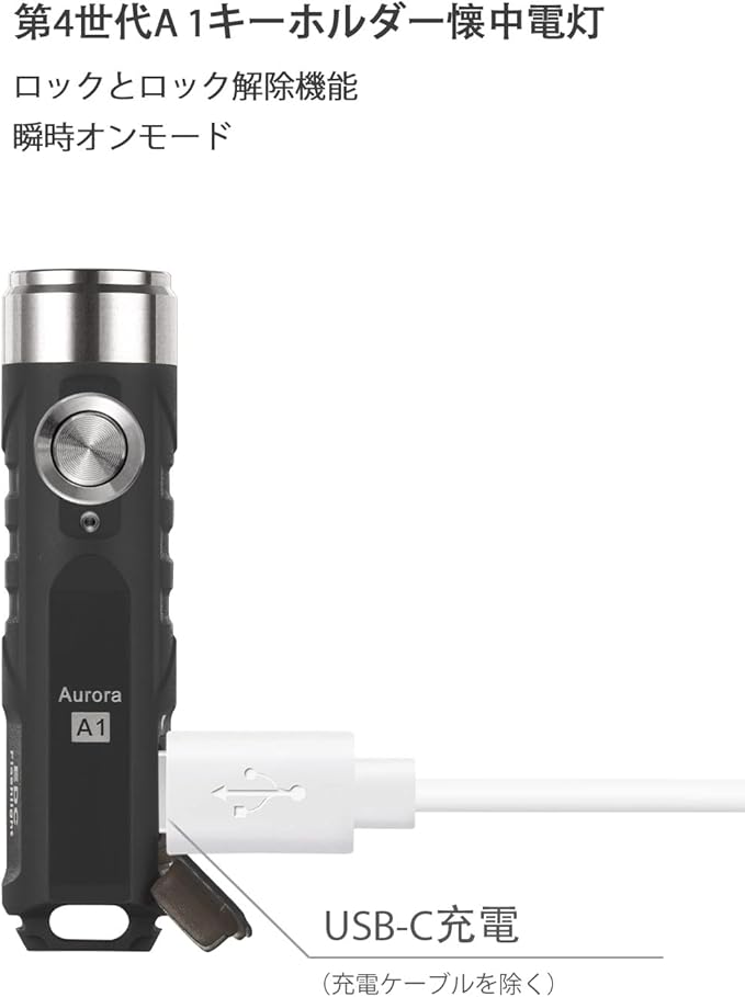 USB-C 充電式: 低モードで 56 時間の動作。 品質のアップグレードにより、このキーチェーン懐中電灯は、より高い出力と実行時間を提供します。